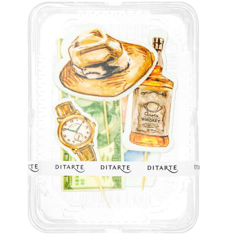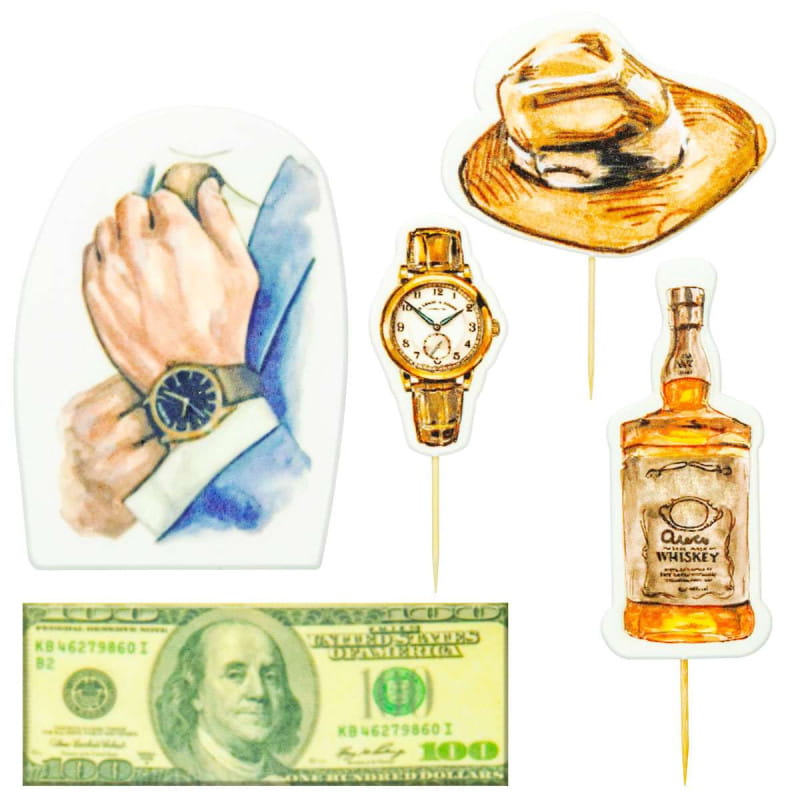Figurka Cukrowa Topper na Tort – Whisky, Zegarek, Kapelusz