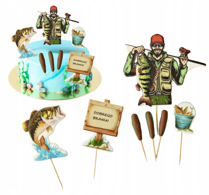 ⭐Figurka Cukrowa Topper na Tort – Wędkarz 2D