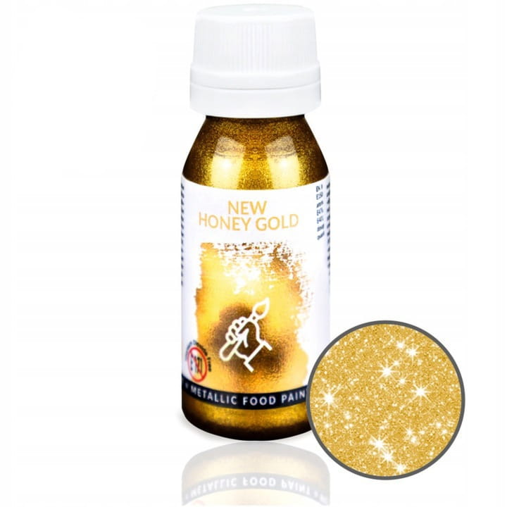 Dodaj luksusowego blasku swoim wypiekom dzięki złotej farbce spożywczej New Honey Gold! Ta wyjątkowa, jadalna farba w płynie pozwala tworzyć efektowne dekoracje, nadając ciastom, tortom i deserom piękny, miodowo-złoty odcień z delikatnie mieniącymi się drobinkami.
