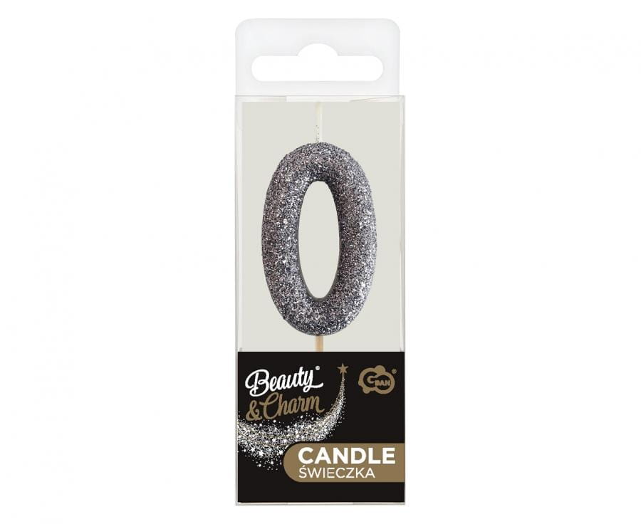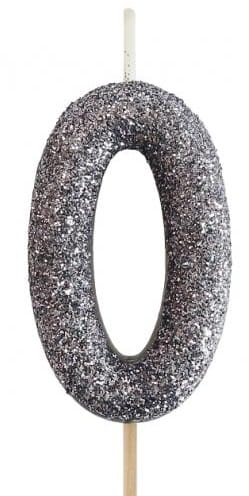 Godan Świeczka cyfra 0 brokatowa czarna