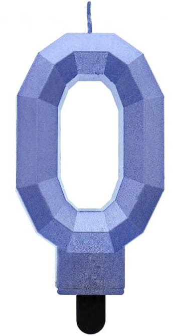 Elegancka metalizowana świeczka na tort w kształcie przypominającym kryształ diamentu. Stanowi doskonały pomysł na dekorację wypieków. Wygodnie podstawki pozwolą Ci łatwo i wygodnie zamocować świeczkę na torcie lub w urodzinowym cieście. Dzięki nim świeczka cyfra 0 będzie także stabilnie stać w torcie.