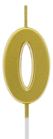 Dodaj elegancji i blasku swojej uroczystości dzięki metalicznej złotej świeczce w kształcie cyfry "0"! To idealna dekoracja na tort urodzinowy, jubileuszowy czy rocznicowy. Może być używana samodzielnie lub jako część większej liczby, np. "100"