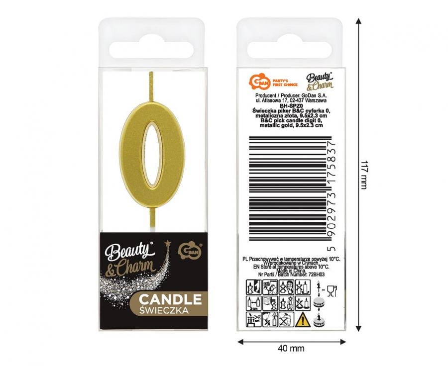 Godan Świeczka cyfra 0 metaliczna złota 9,5x2,3 cm