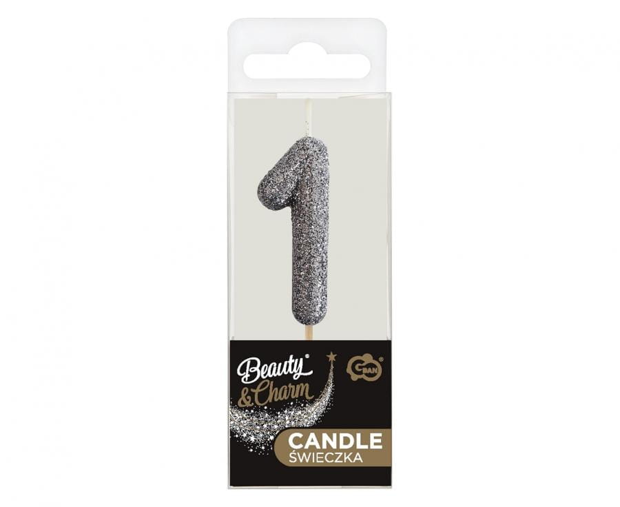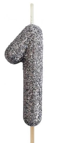 Świeczka urodzinowa to konieczna ozdoba każdego tortu. Prezentowana czarna świeczka z błyszczącym brokatem prezentuje się na torcie niezwykle elegancko. Świeczka jest w kształcie cyfry, więc idealnie sprawdzi się do tworzenia różnego rodzaju dat.