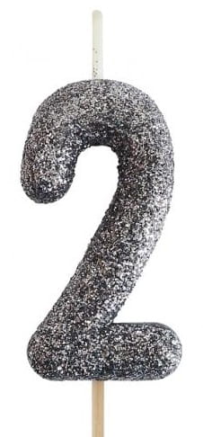 Świeczka urodzinowa to konieczna ozdoba każdego tortu. Prezentowana czarna świeczka z błyszczącym brokatem prezentuje się na torcie niezwykle elegancko. Świeczka jest w kształcie cyfry, więc idealnie sprawdzi się do tworzenia różnego rodzaju dat.
