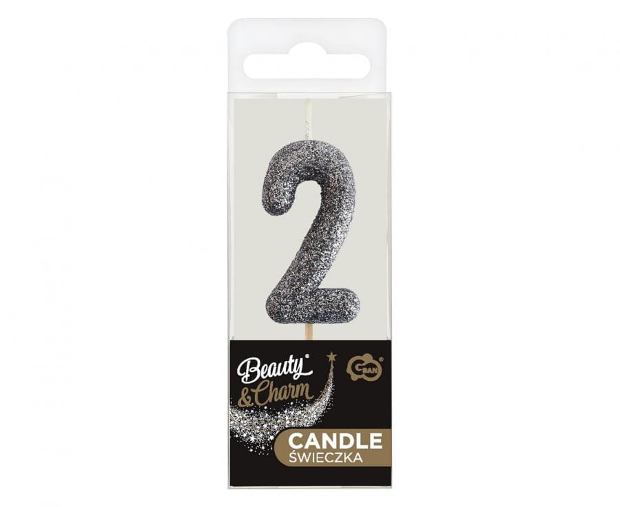 Godan Świeczka cyfra 2 brokatowa czarna