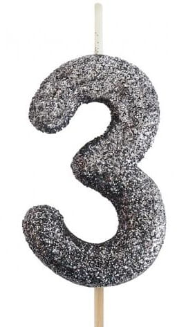 Godan Świeczka cyfra 3 brokatowa czarna