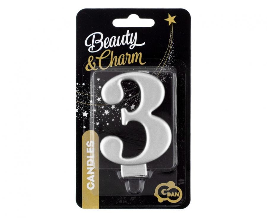 Godan Świeczka cyfra 3 srebrna