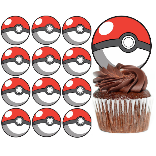 OPŁATEK NA MUFFINKI, CIASTECZKA, BABECZKI POKEMON POKEBALL 12szt