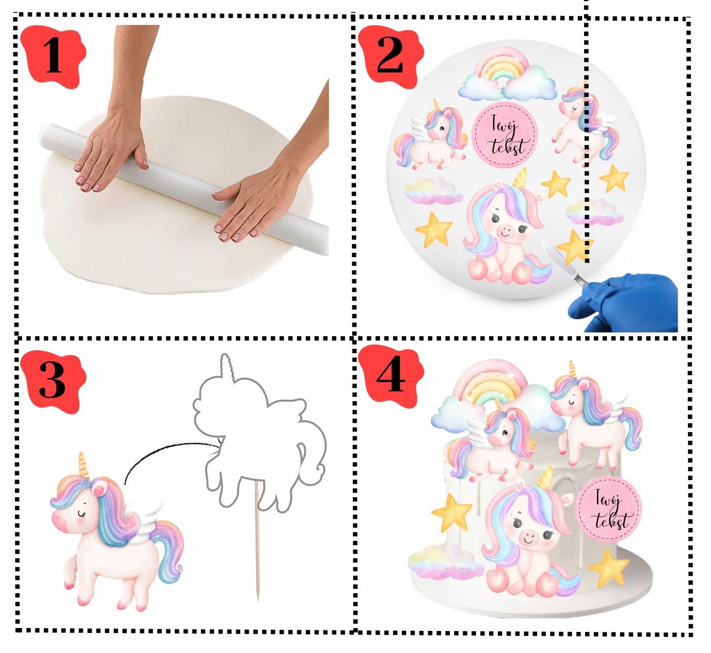 4️⃣Umieść postacie na torcie i ciesz się ich niepowtarzalnym wyglądem.