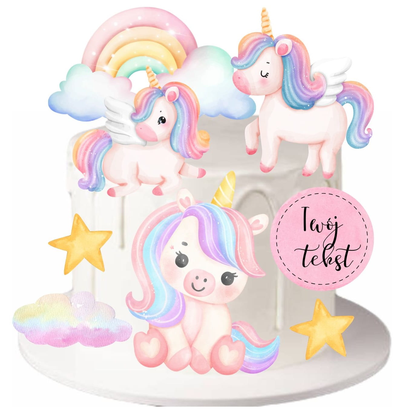 1️⃣OPŁATEK CUKROWY NA TORT z motywem koników UNICORN
