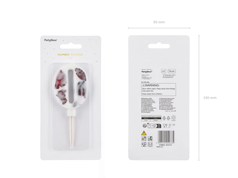 PartyDeco Świeczka cyfra 0 biała z kwiatami