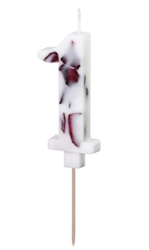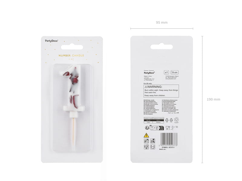 PartyDeco Świeczka cyfra 1 biała z kwiatami