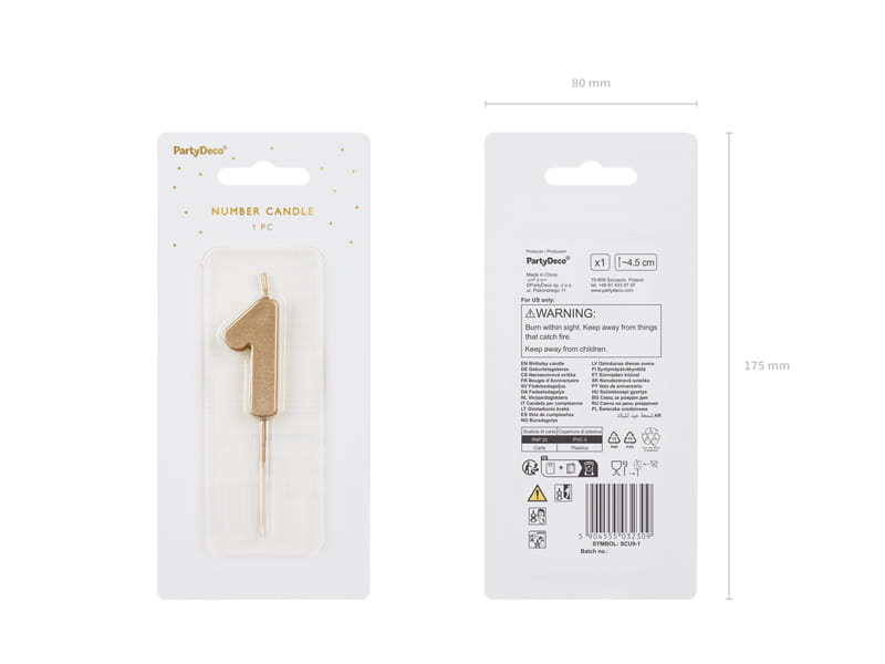 Nasza świeczka urodzinowa w kształcie cyfry 1 to idealna ozdoba na każdy tort urodzinowy! Dzięki wyjątkowemu, złotemu metalicznemu wykończeniu, świeczka dodaje blasku i elegancji każdemu wypiekowi. Niezależnie od tego, czy umieścisz ją na torcie, cieście czy babeczce, z pewnością przyciągnie wzrok wszystkich gości.