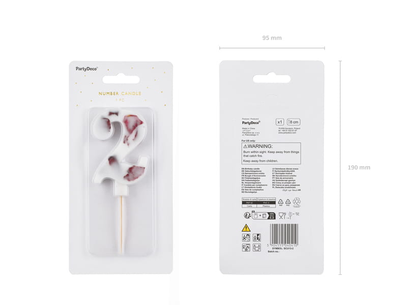 PartyDeco Świeczka cyfra 2 biała z kwiatami