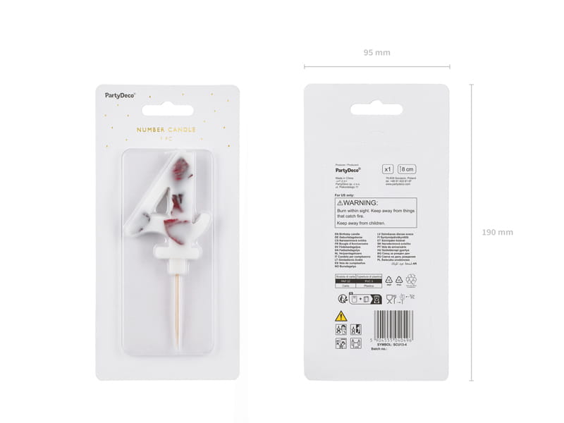 PartyDeco Świeczka cyfra 4 biała z kwiatami