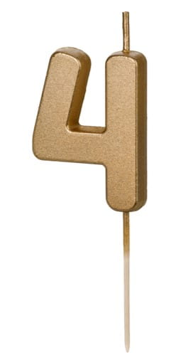 PartyDeco Świeczka cyfra 4 złota retro