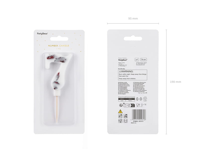 PartyDeco Świeczka cyfra 7 biała z kwiatami