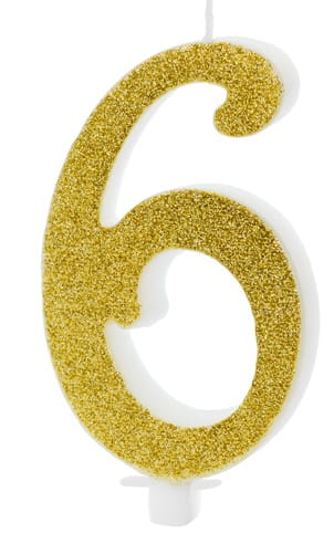 PartyDeco Świeczka urodzinowa cyfra 6 złoty 10cm