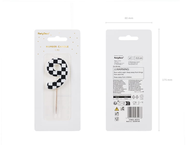 Dodaj wyjątkowy akcent do swojego tortu z naszą świeczką urodzinową w kształcie cyfry 9! Oryginalny wzór czarno-białej szachownicy nadaje jej niepowtarzalny charakter, który z pewnością przyciągnie uwagę zarówno dzieci, jak i dorosłych. Niezastąpiona na każdym przyjęciu urodzinowym, ta świeczka nie tylko uświetni moment zdmuchnięcia życzeń, ale także doda wyjątkowego stylu i elegancji Twojemu wypiekowi.