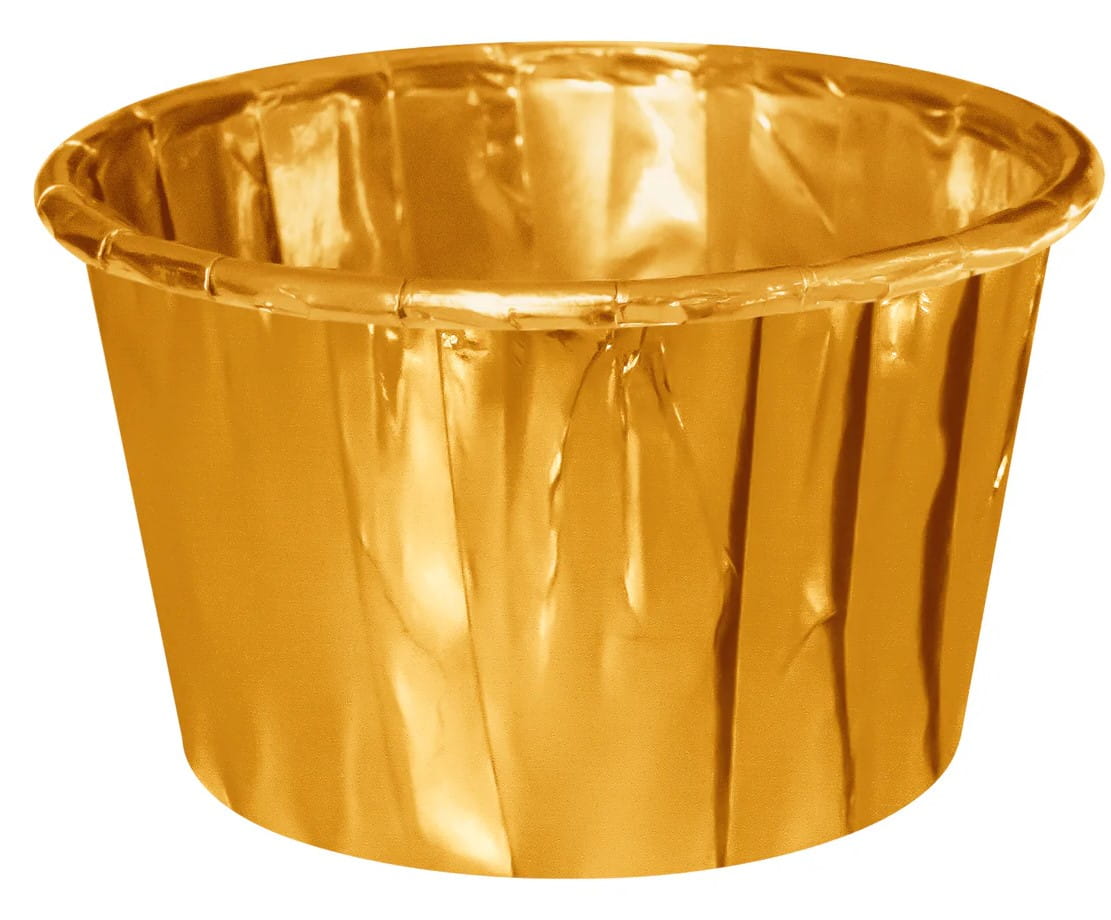 Papierowe papilotki na muffinki, babeczki w kolorze lśniącego metalicznego złota. Bardzo eleganckie, dzięki czemu Twoje wypieki będą wspaniale się prezentować. Idealnie sprawdzą się podczas organizacji słodkiego stołu.