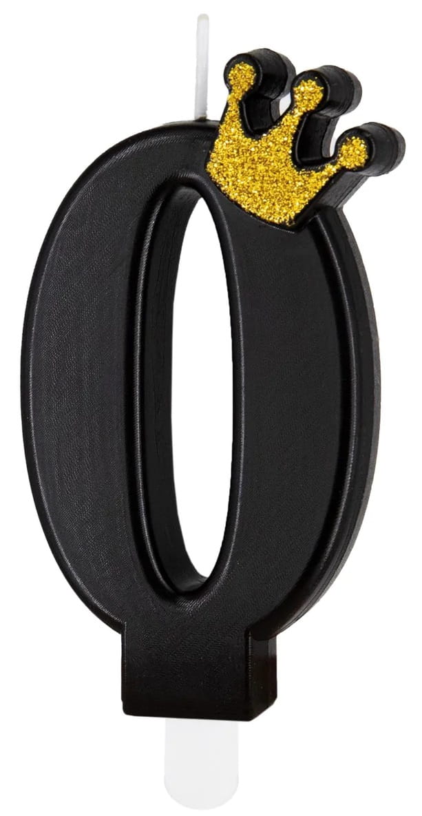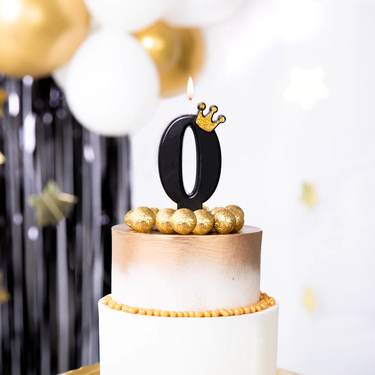 PartyPal Świeczka czarna ze złotą koroną cyfra 0
