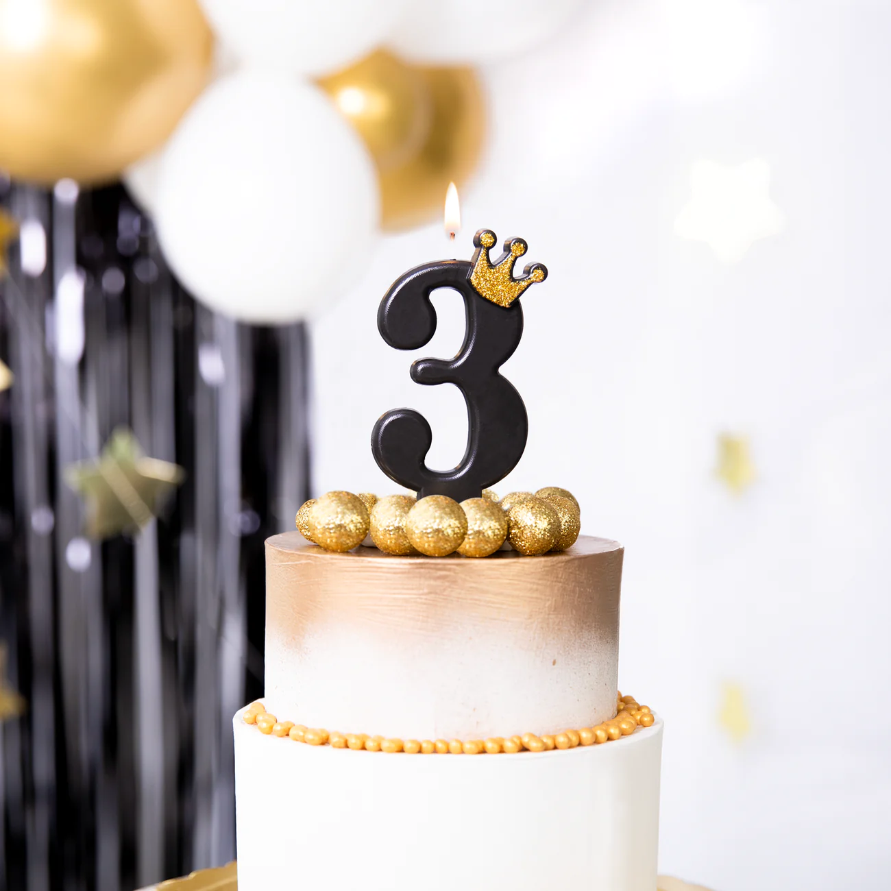 PartyPal Świeczka czarna ze złotą koroną cyfra 3