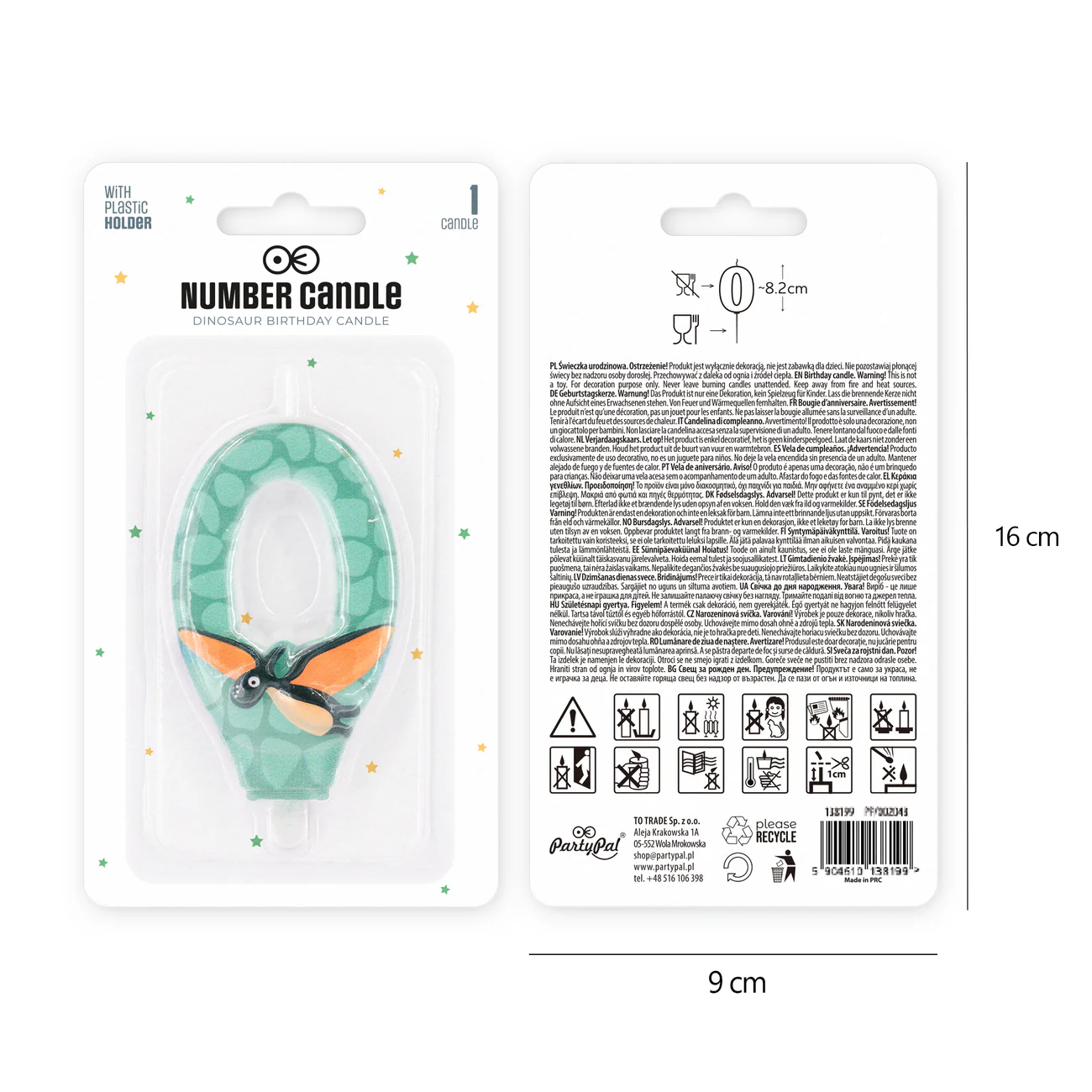 PartyPal Świeczka na tort Dinozaury cyfra 0