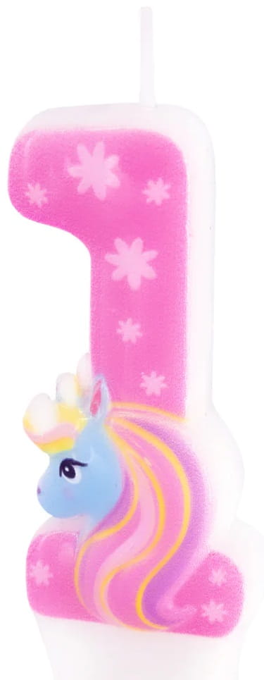 PartyPal Świeczka na tort Jednorożec cyfra 1