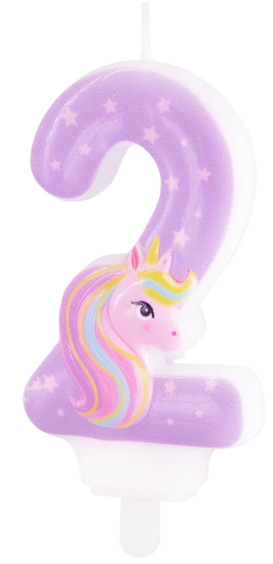 PartyPal Świeczka na tort Jednorożec cyfra 2