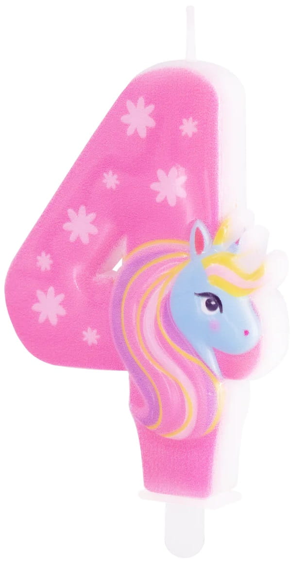 PartyPal Świeczka na tort Jednorożec cyfra 4