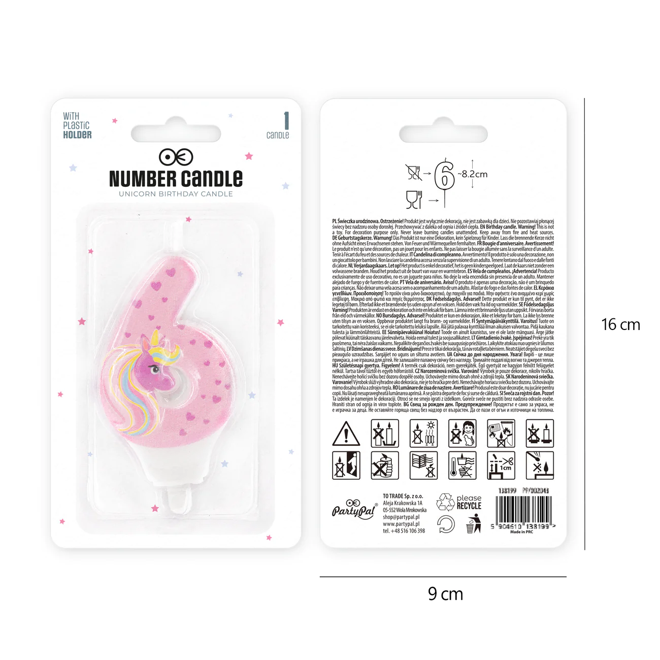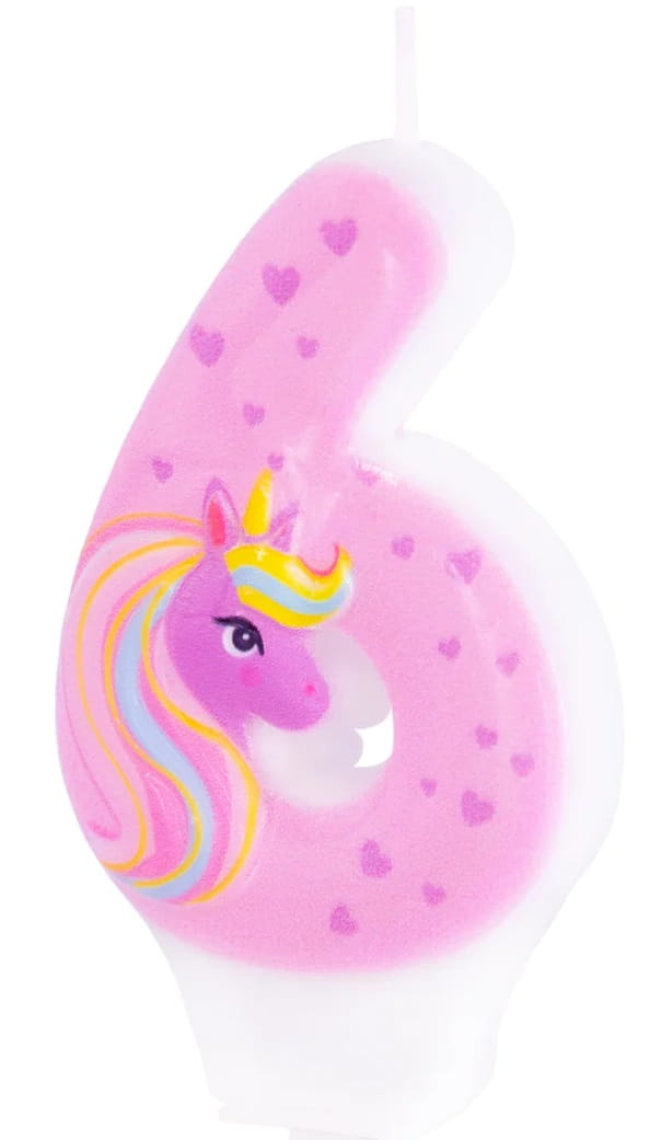 PartyPal Świeczka na tort Jednorożec cyfra 6