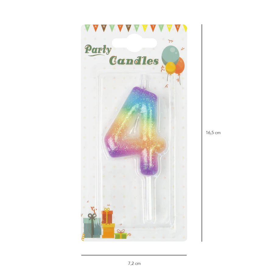 PartyPal Świeczka na tort kolorowa cyfra 4