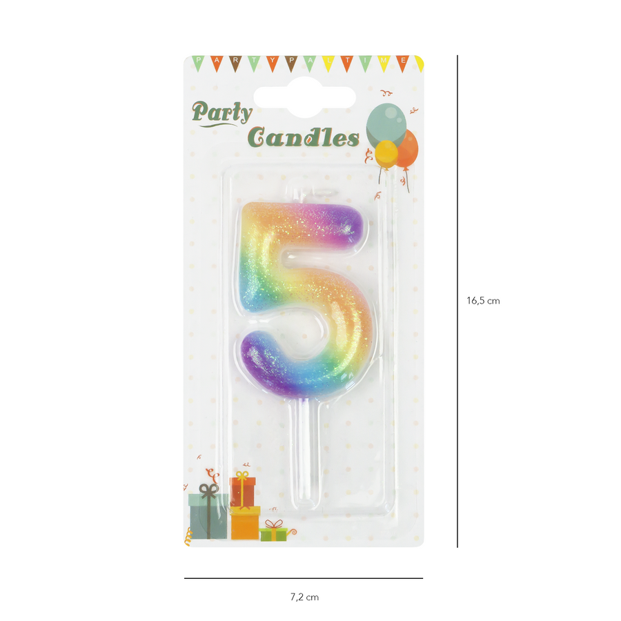PartyPal Świeczka na tort kolorowa cyfra 5