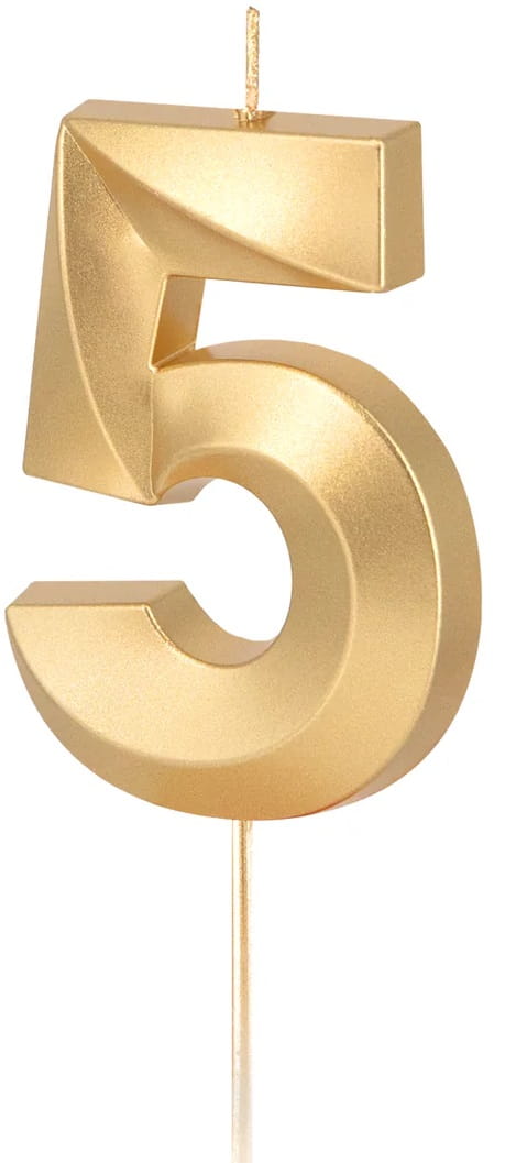 PartyPal Świeczka złota metaliczna cyfra 5