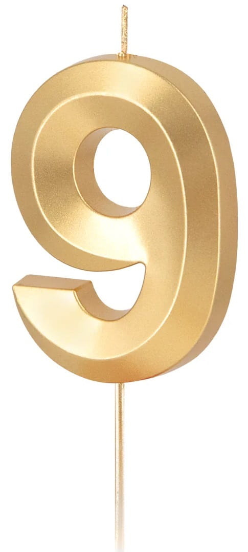 PartyPal Świeczka złota metaliczna cyfra 9