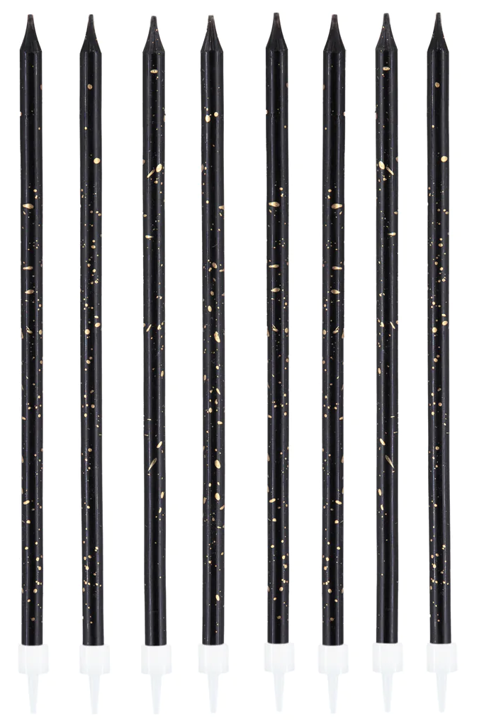 ✨Eleganckie czarno-złote świeczki urodzinowe – zestaw 8 szt. ✨