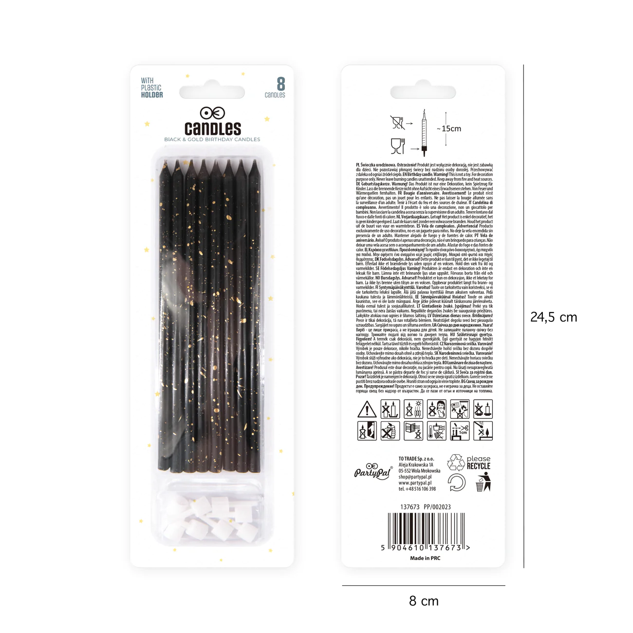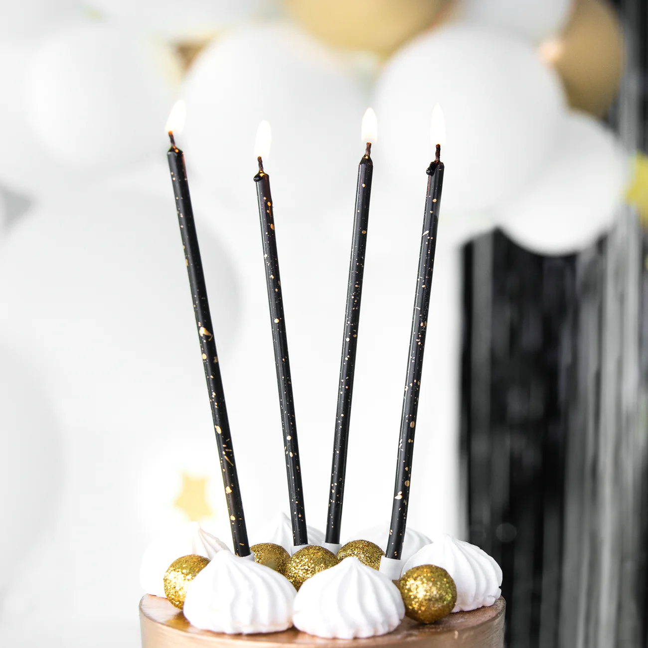 Dodaj wyjątkowego blasku każdemu tortowi! Długie, smukłe świeczki w eleganckim połączeniu czerni i złota to doskonała dekoracja na urodziny, wesela i inne wyjątkowe okazje. Ich stylowy wygląd podkreśli charakter przyjęcia i nada mu wyrafinowanego uroku.