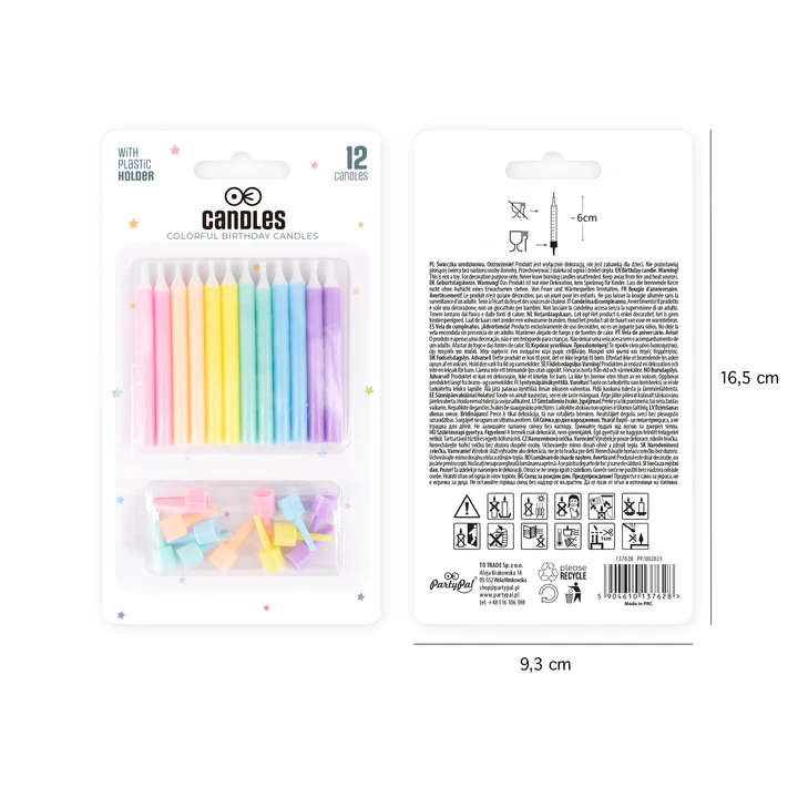PartyPal Świeczki urodzinowe kolorowe 12szt. mix