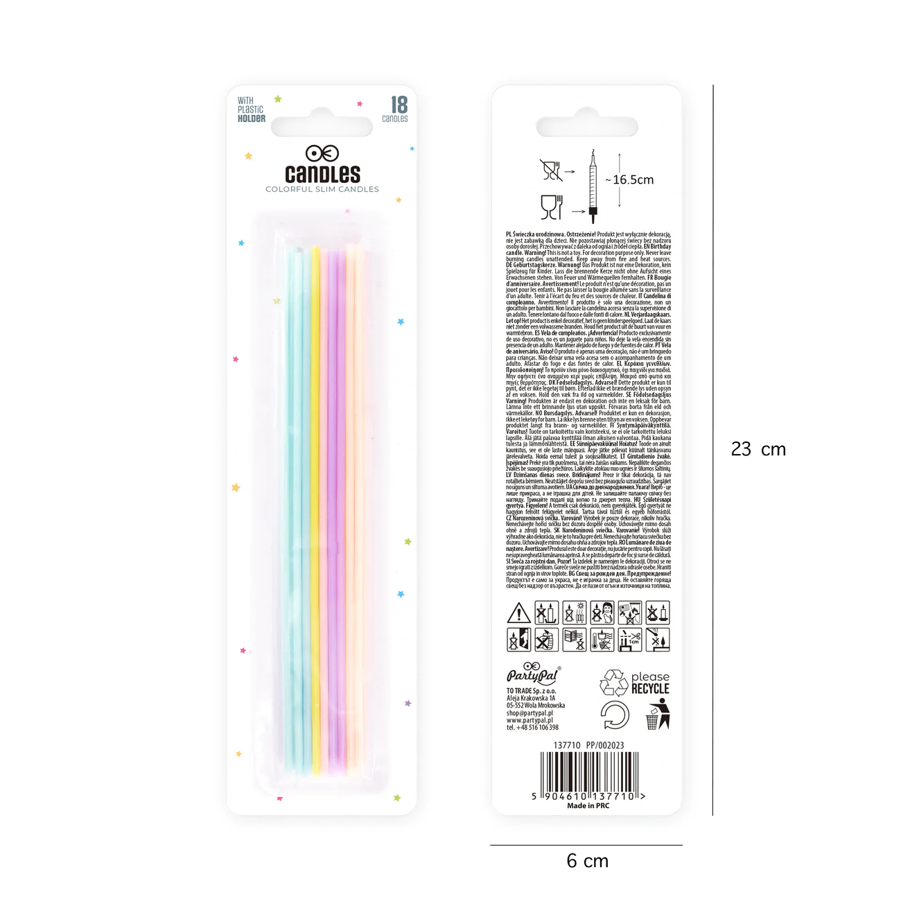 PartyPal Świeczki urodzinowe pastel cienkie długie