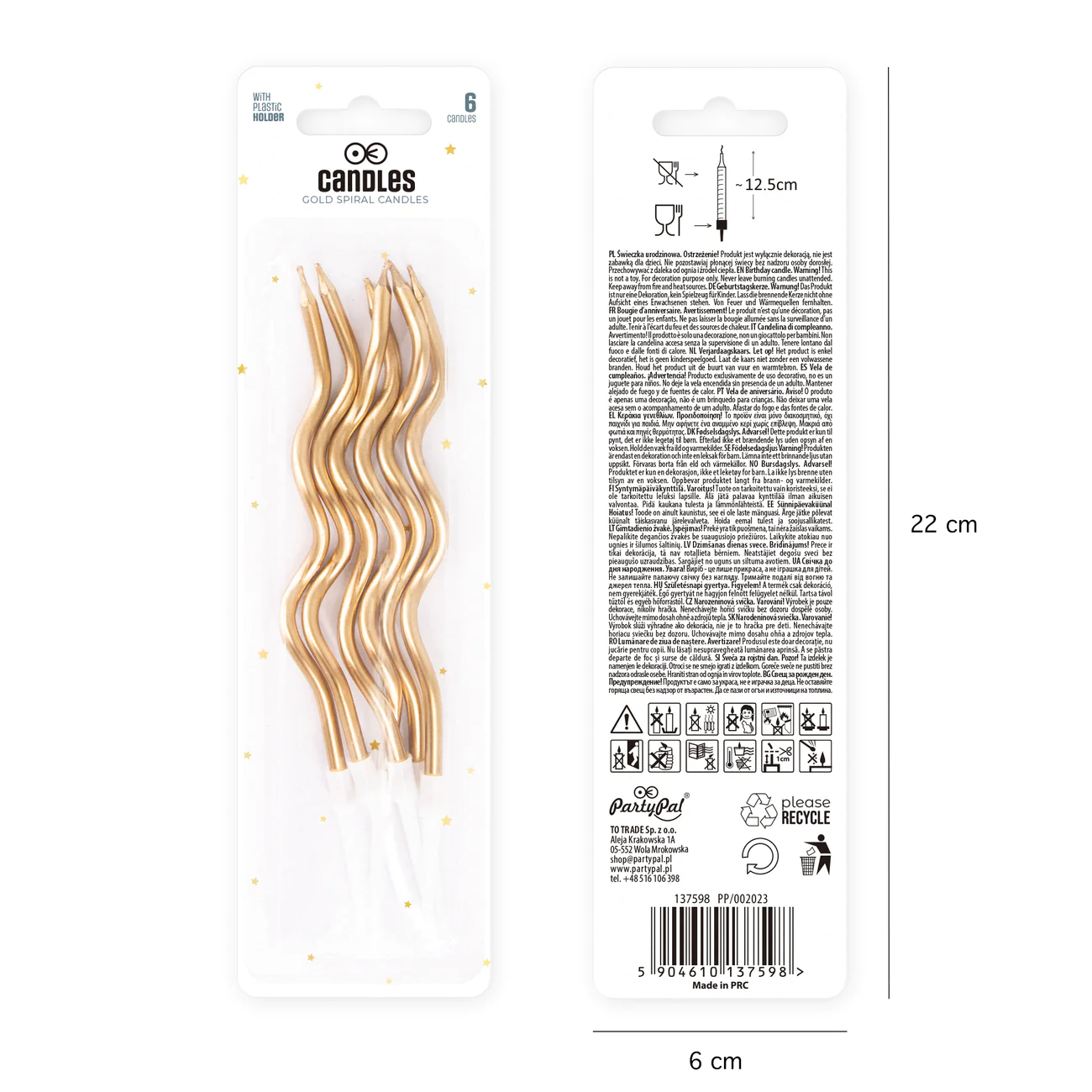 PartyPal Świeczki urodzinowe spiralne złote 6szt