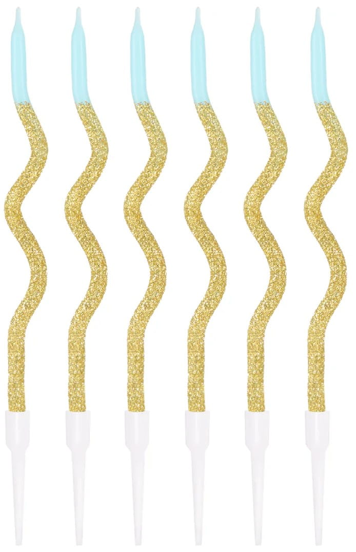 ŚWIECZKI URODZINOWE ZAKRĘCONE ZŁOTO-NIEBIESKIE