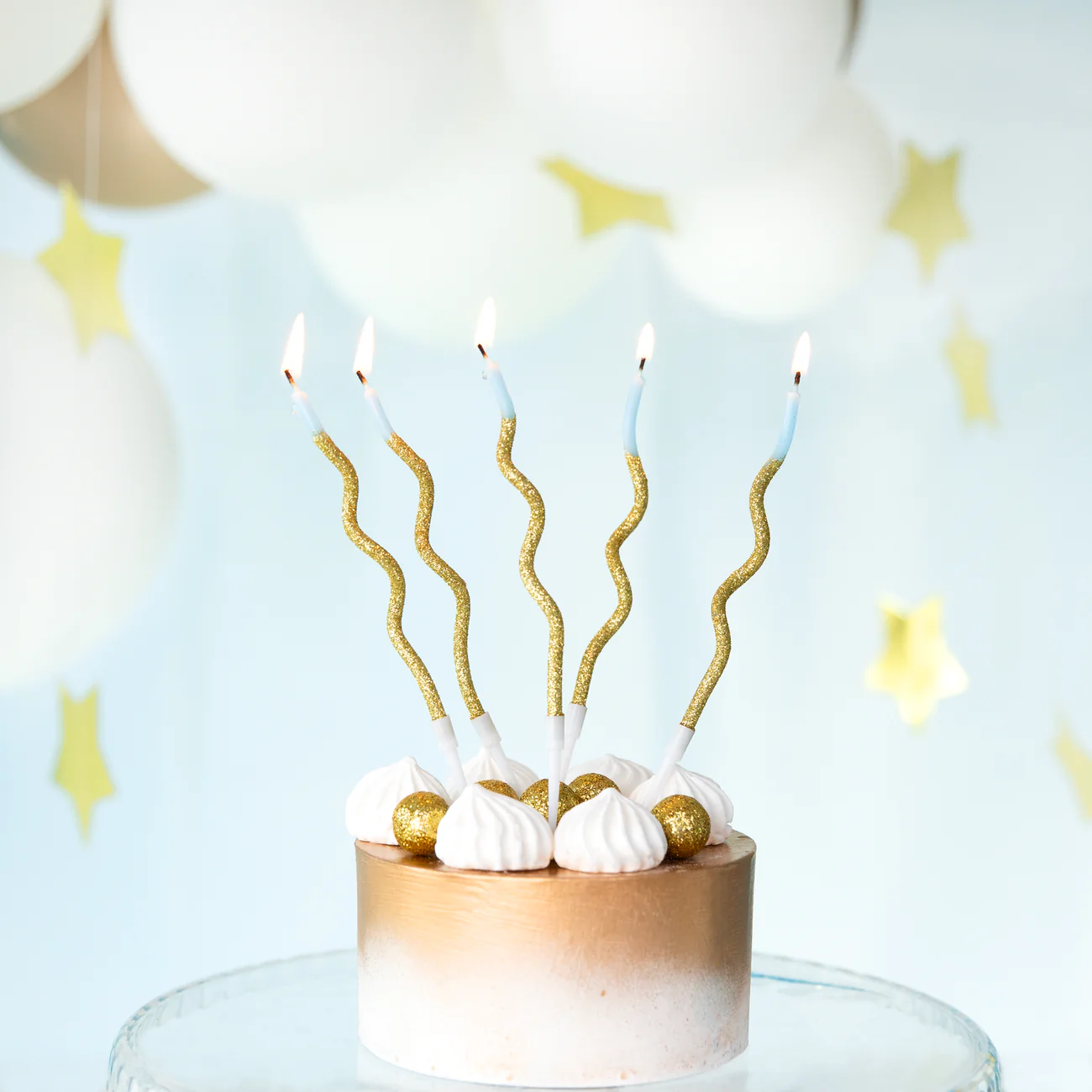 Świeczki to konieczny element urodzinowego tortu, a ich zdmuchanie na torcie to już tradycja. Ten komplet długich, spiralnych świeczek będzie wspaniałą ozdobą urodzinowego tortu. Dodatkowo świeczki są w kolorze złoto-niebieskim, więc umieszczone na torcie będą jego wspaniałą dekoracją.
