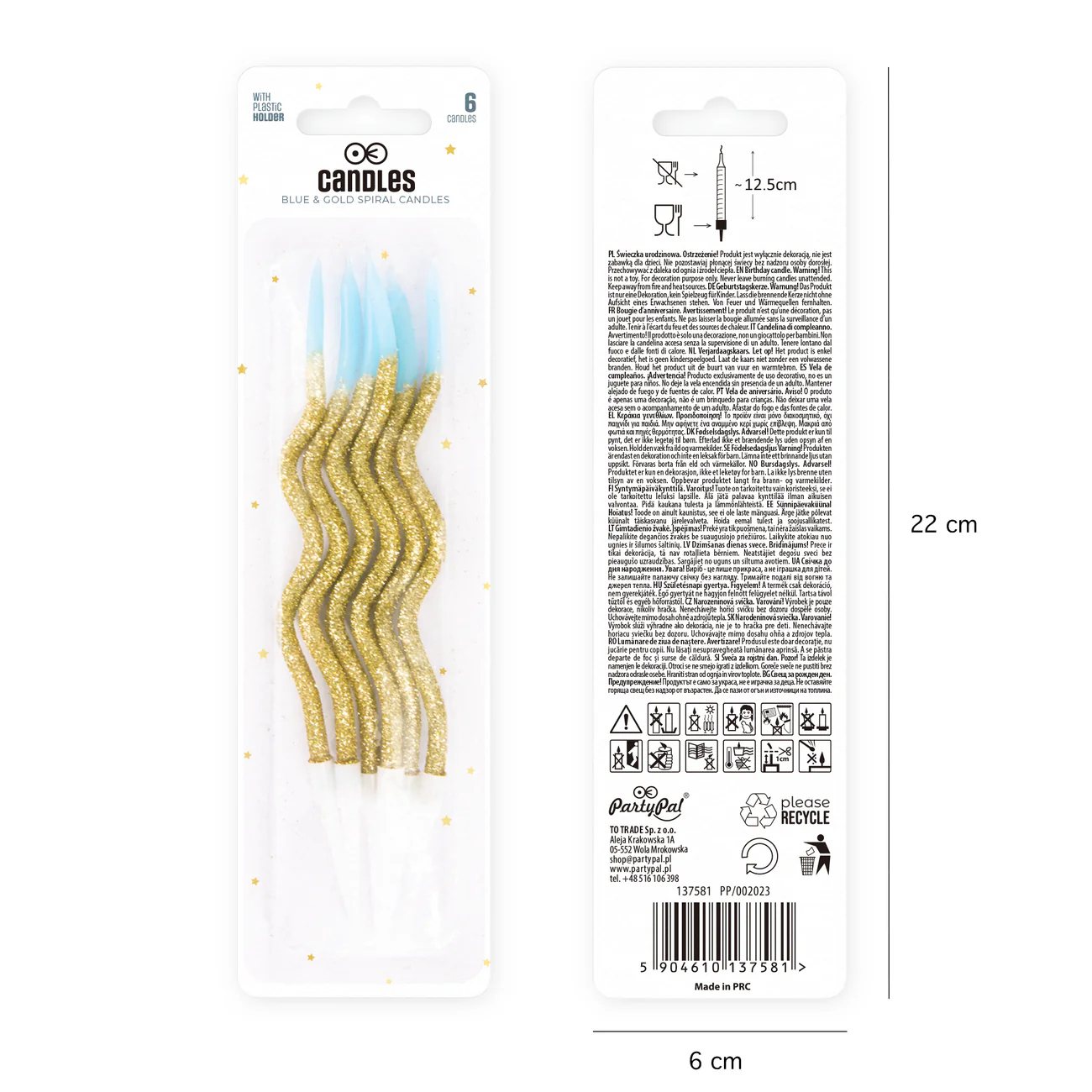 PartyPal Świeczki urodzinowe spiralne złoto-niebie