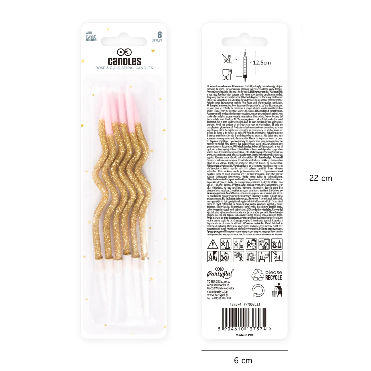 PartyPal Świeczki urodzinowe spiralne złoto-różowe