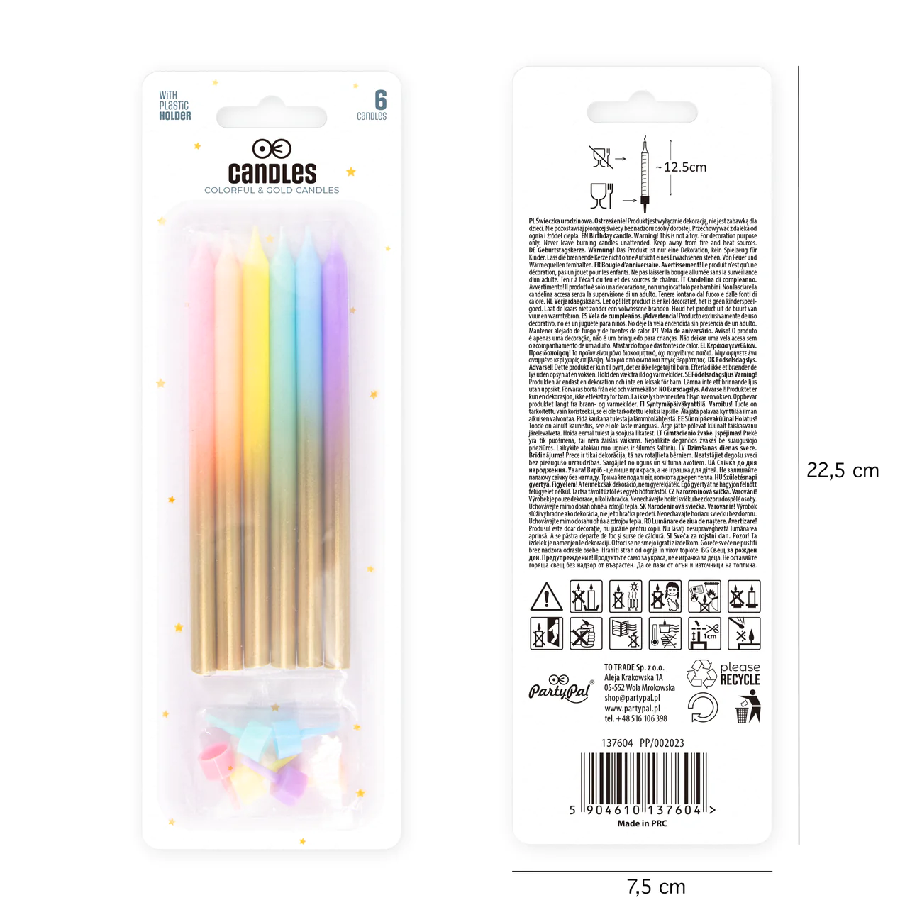PartyPal Świeczki urodzinowe złoto-tęczowe 6szt