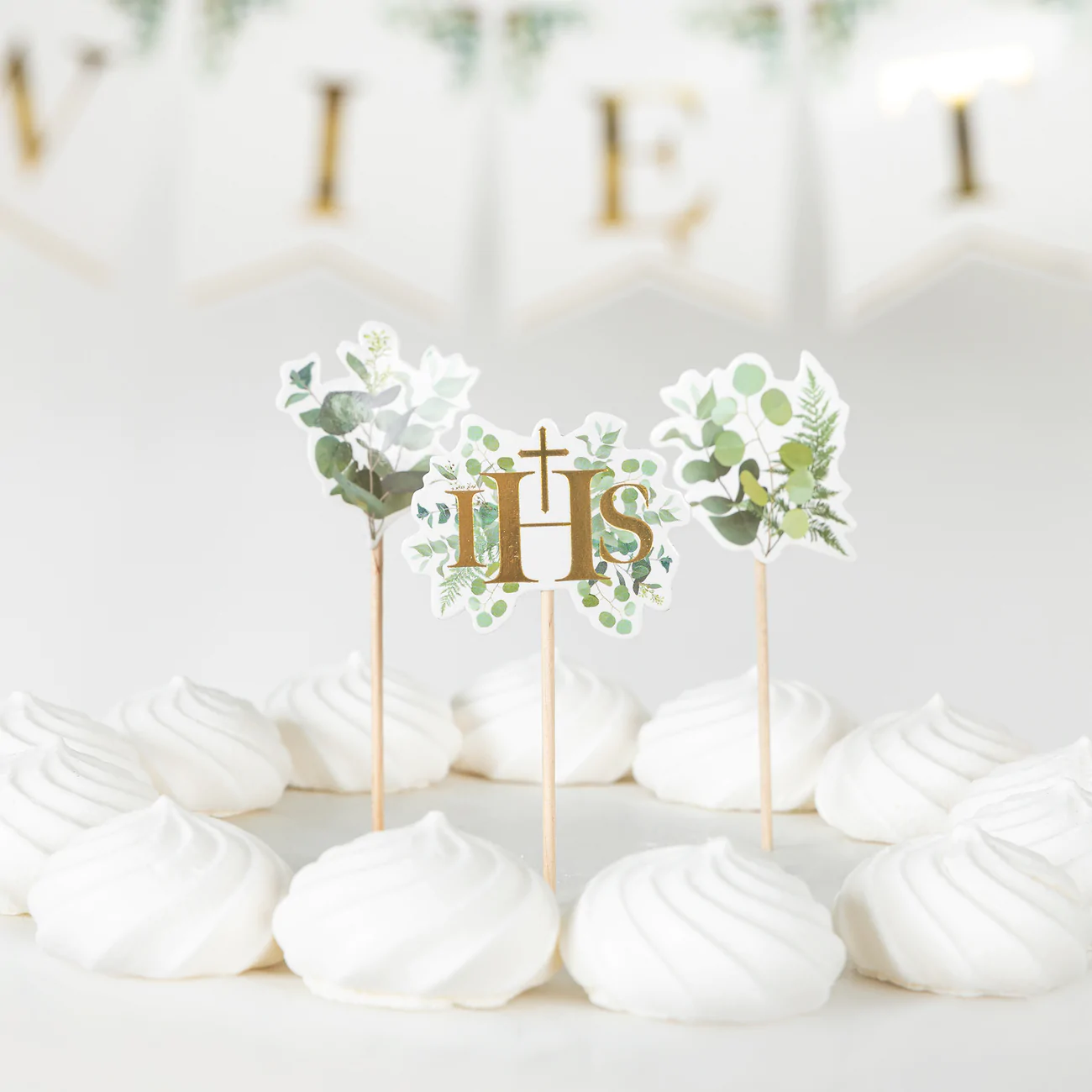 ✨ Toppery na tort komunijny – Eukaliptus, 5 szt. ✨