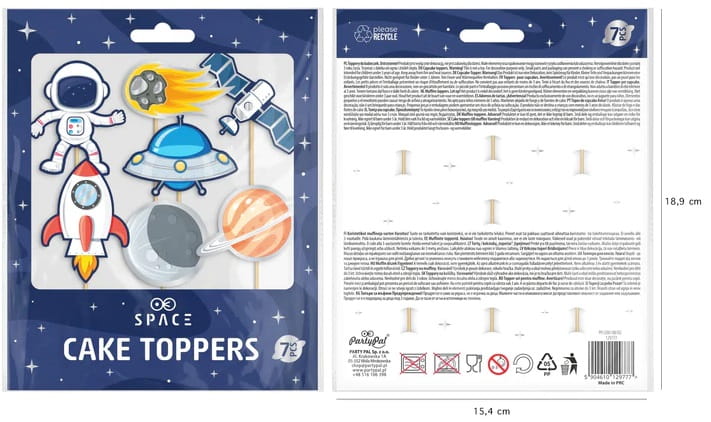 Stwórz kosmiczną dekorację na swoim przyjęciu! Zestaw 7 topperów z motywem kosmosu to idealny sposób na ozdobienie tortu, babeczek i innych słodkości. Doskonale podkreślą tematykę imprezy i zachwycą zarówno dzieci, jak i dorosłych miłośników astronomii.