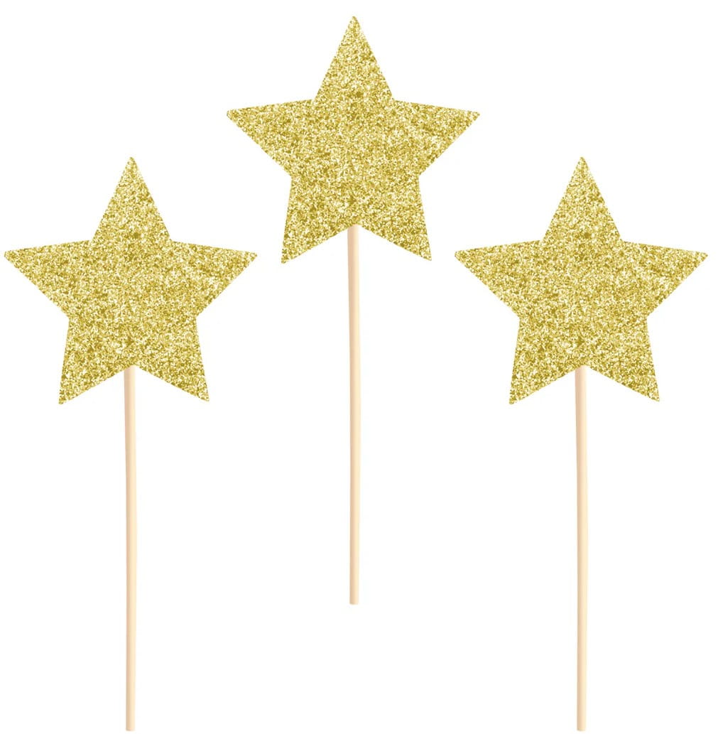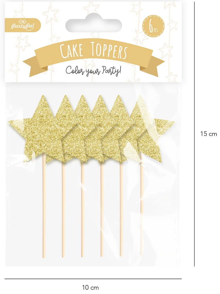 PartyPal Toppery na tort gwiazdki brokatowe złote