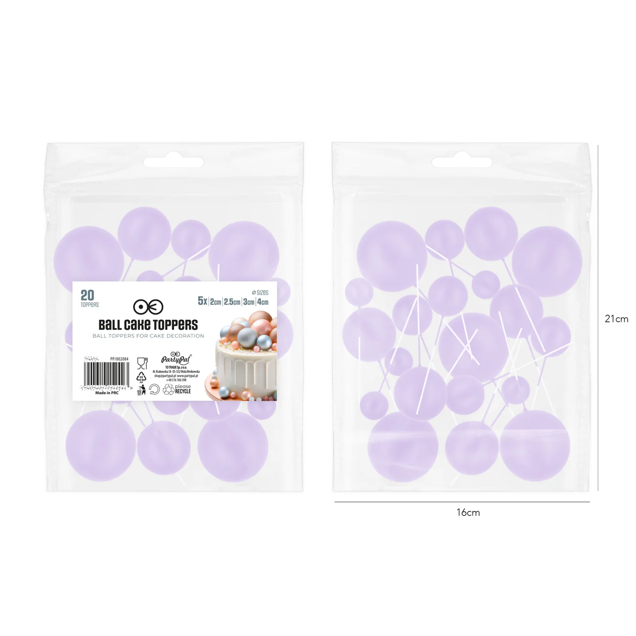 PartyPal Toppery na tort kulki jasnofioletowe 20sz